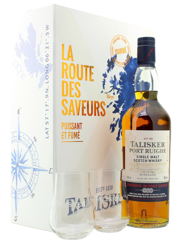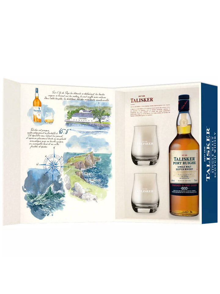 Talisker Port Ruighe + 2 Glasses Gift Set Single Malt Scotch Whisky 700mL